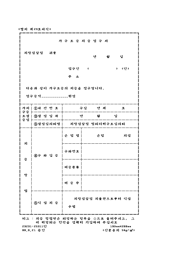 가구 조금 지급 청구서 양식 예제입니다. 지방검찰청 귀중 년 월 일