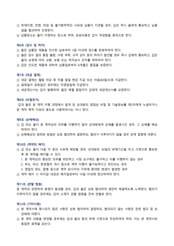 9,000원/월거래 계약서 서식입니다. 거래 계약서는 거래 당사자들이 특정 재산권이나 용역 등을 교환하기로 합의하고, 그 내용과 조건을 명확히 문서화하여 상호 간의 권리와 의무를 규정하는 서식입니다. 이는 구두 합의만으로는 불충분할 수 있는 복잡한 거래에서 분쟁의 소지를 줄이고, 약속의 이행을 강제하는 구속력 있는 증거가 됩니다.