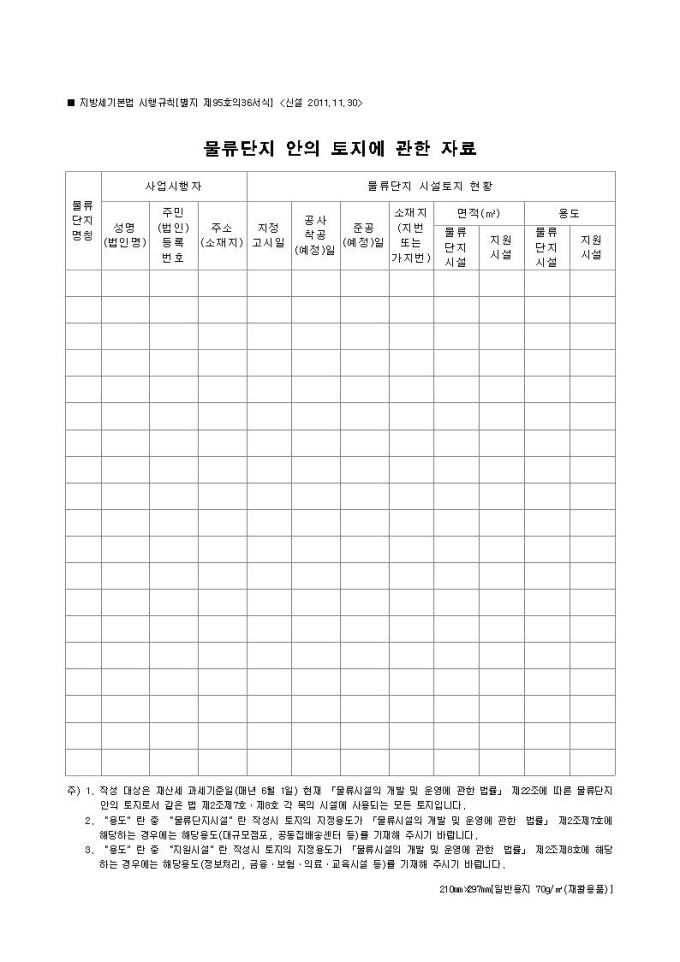 물류단지 안의 토지에 관한 자료 [지방세기본법 시행규칙 서식95의36]