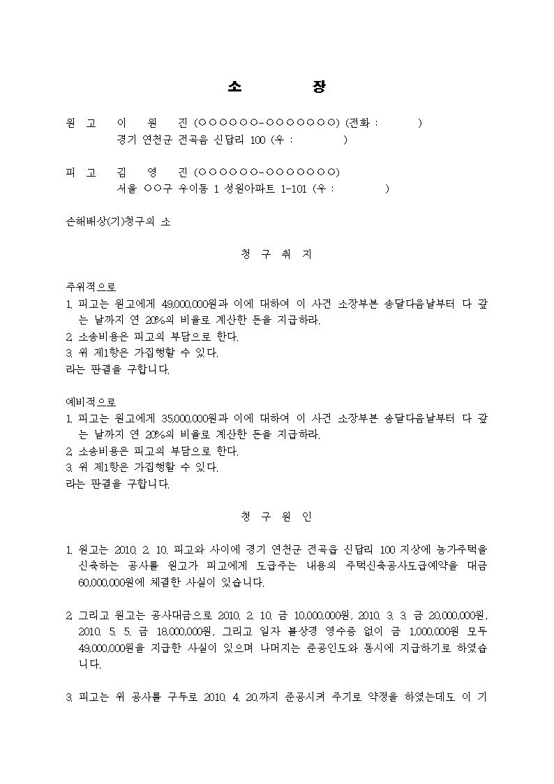 손해배상청구 소장(변론중 소변경, 청구취지 감축 및 청구원인 변경신청, 청구일부취하)